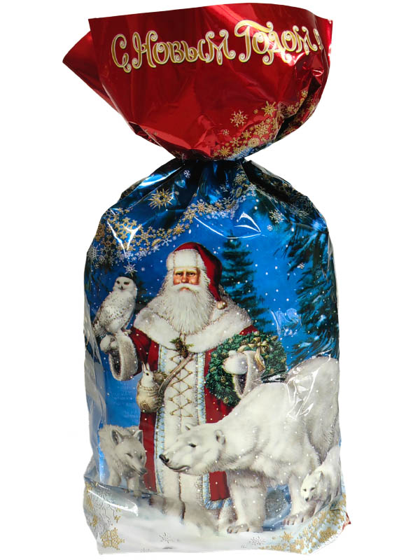 №906 Пакет С белым медведем (пластик) 700г - купить оптом и в розницу в интернет-магазине | Новогодние подарки «Конфетель»