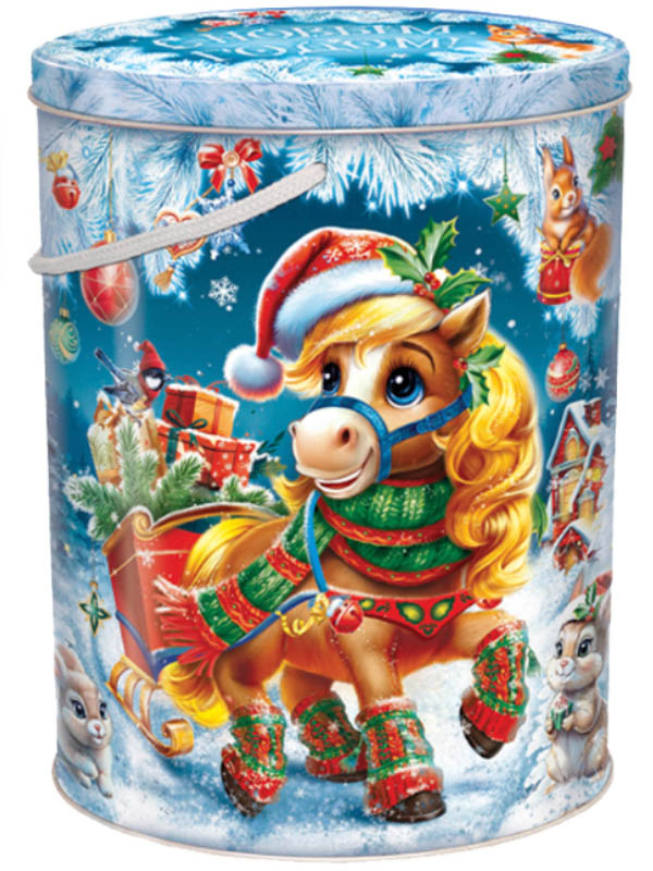 №262у Упаковка Новогодний курьер (жесть) 1200г - купить оптом и в розницу в интернет-магазине в Казани | Новогодние подарки «Конфетель»