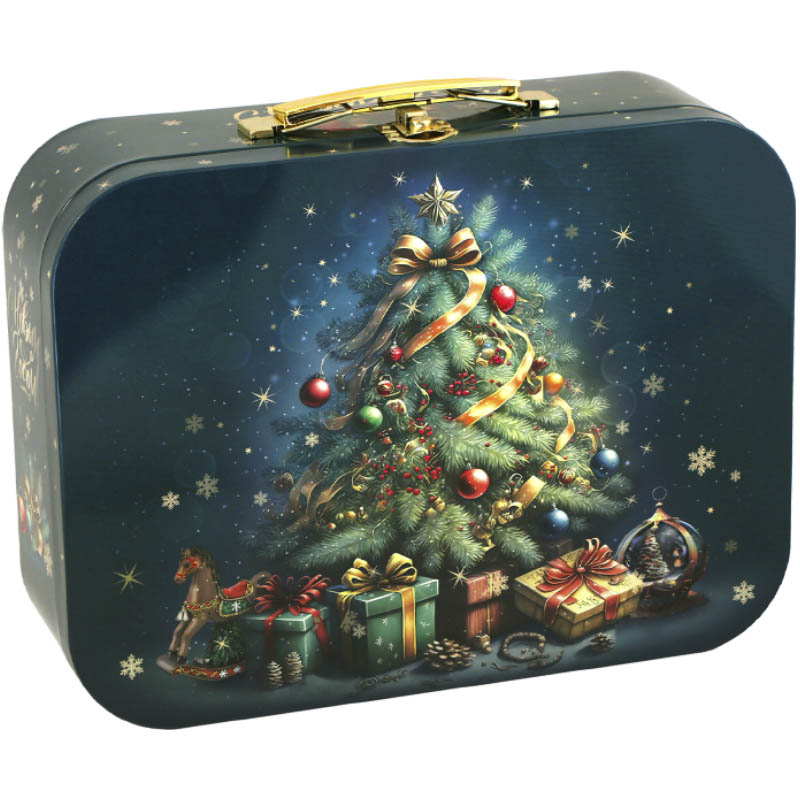 №267у Упаковка Чемодан Винтажная ёлка (жесть) 2200г - купить оптом и в розницу в интернет-магазине в Казани | Новогодние подарки «Конфетель»