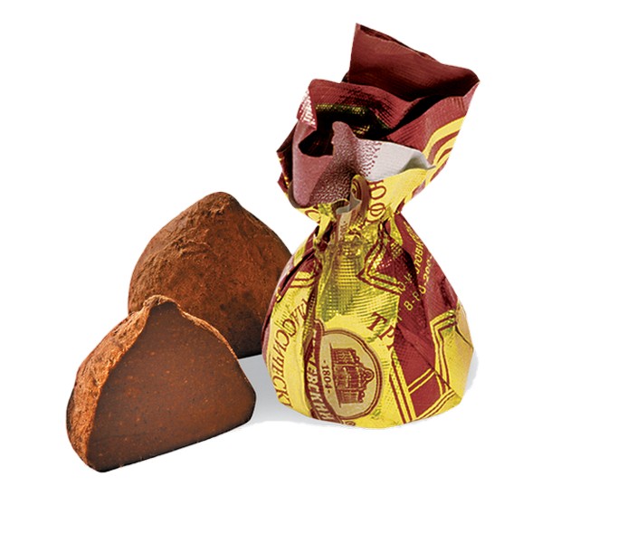 Шоколадно-кремовая конфета куполообразной формы, обсыпанная какао-порошком.